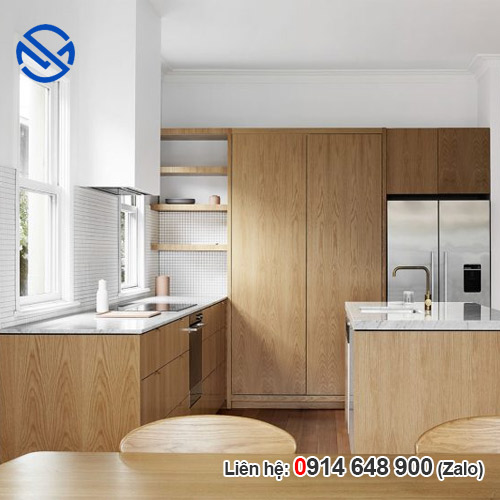 Trong phòng bếp xu hướng nội thất sử dụng gỗ ván ép công nghiệp được sử dụng rộng rãi ở các vị trí: